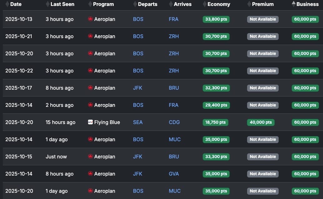 Both Chase Ultimate Rewards and Bilt transfer to United/Aeroplan, so if you’ve got UR or Bilt, start watching these routes for award space.