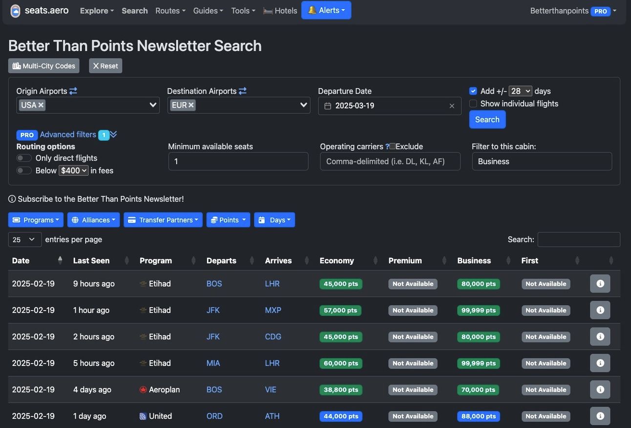 Nathan asked how I’m finding those 21k point redemptions for flights to Europe using the Reward Seat Checker.