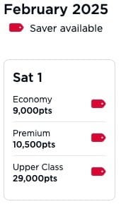 Looking at Boston to London, you can see that on February 1st, you could book Upper Class for just 29,000 Virgin points.