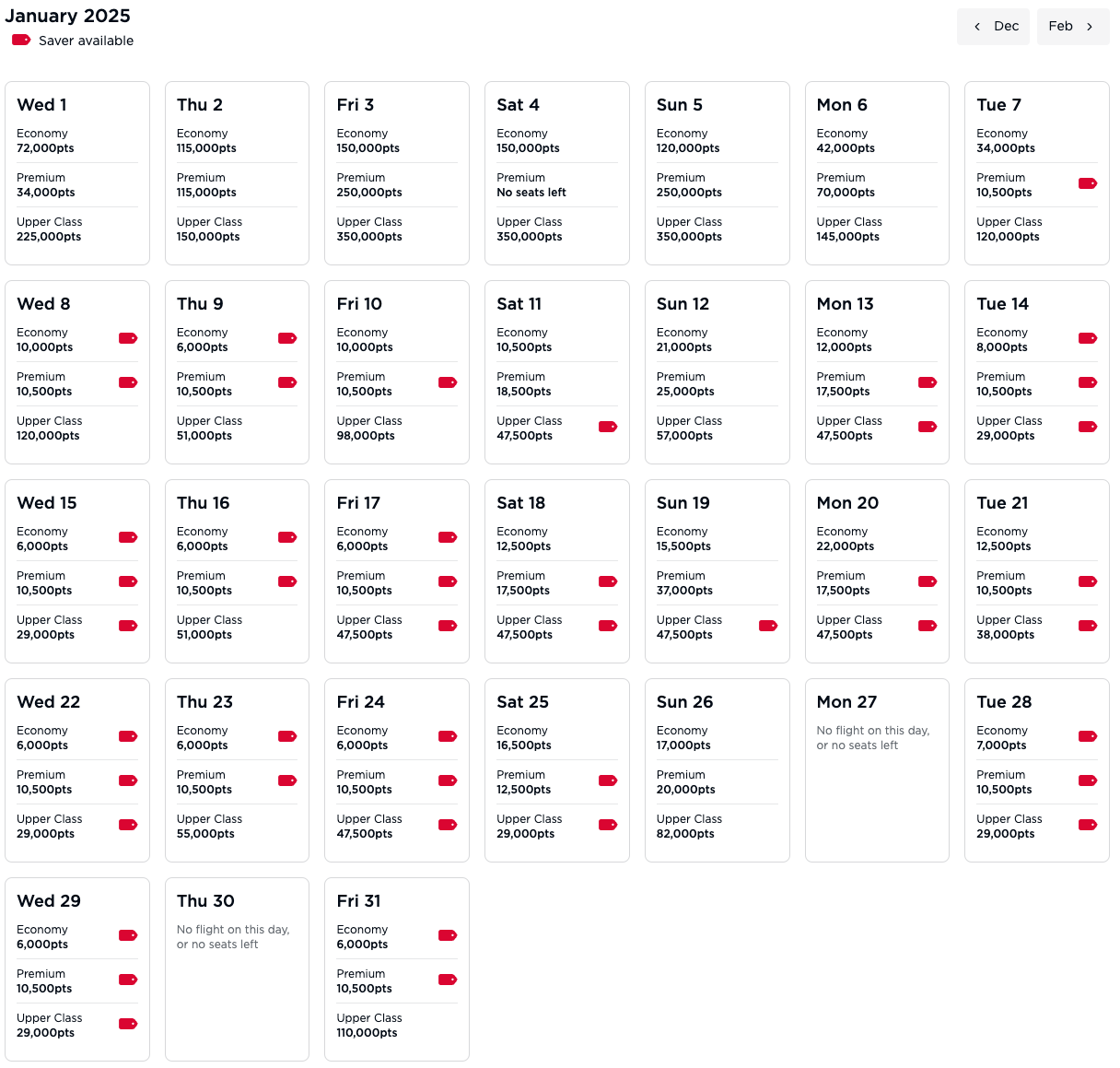 If you’re searching for Virgin Atlantic reward flights, start with the Virgin Atlantic Reward Seat Checker. It lets you view the entire month’s calendar at a glance, making it easier to spot availability. Once you find the dates you want, head over to the Virgin Atlantic site to book.
